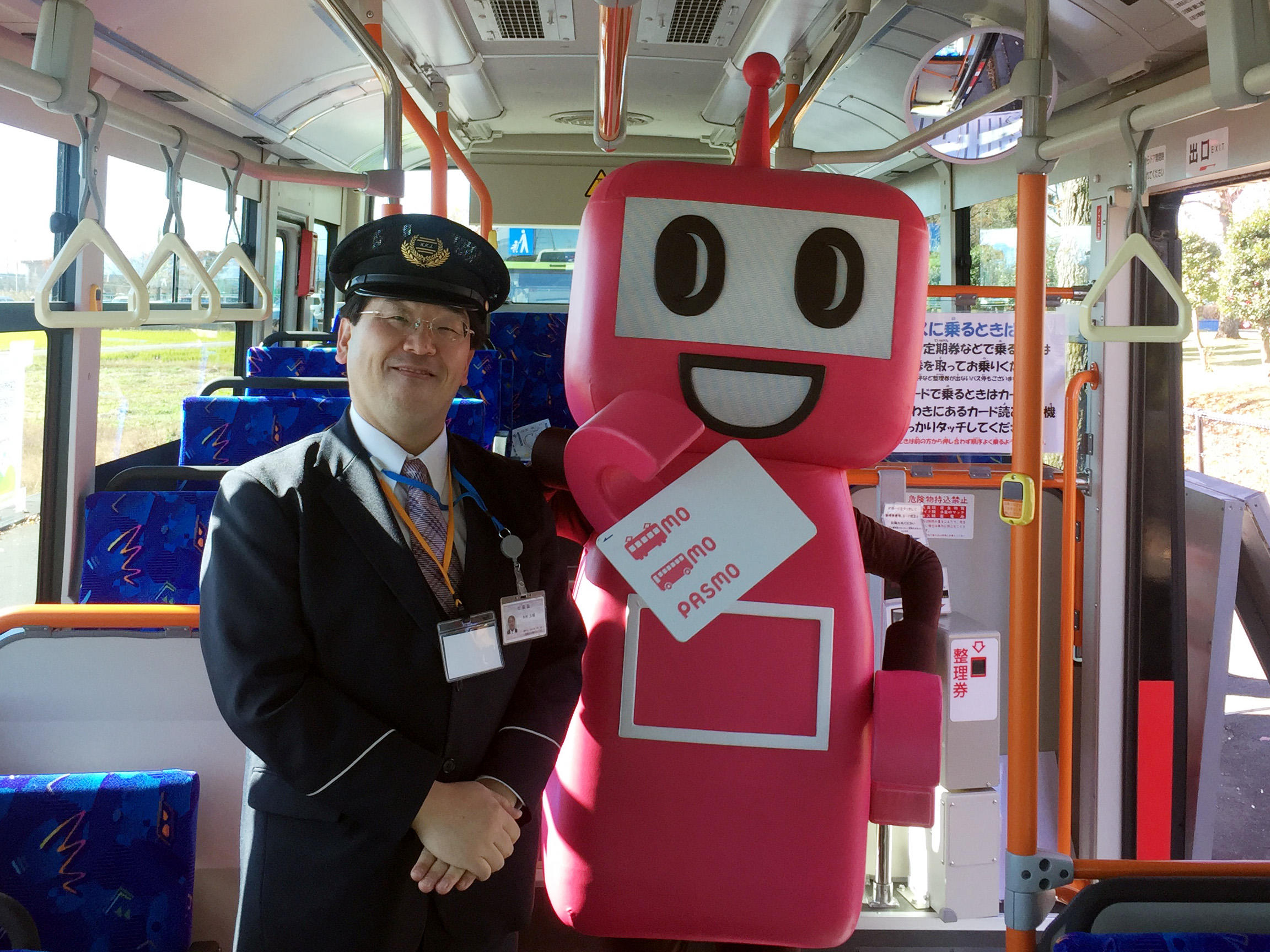 バス車内に入ってバス会社の方と一緒に記念写真を撮影するなど、PASMOのPRに奮闘した1日でした。
