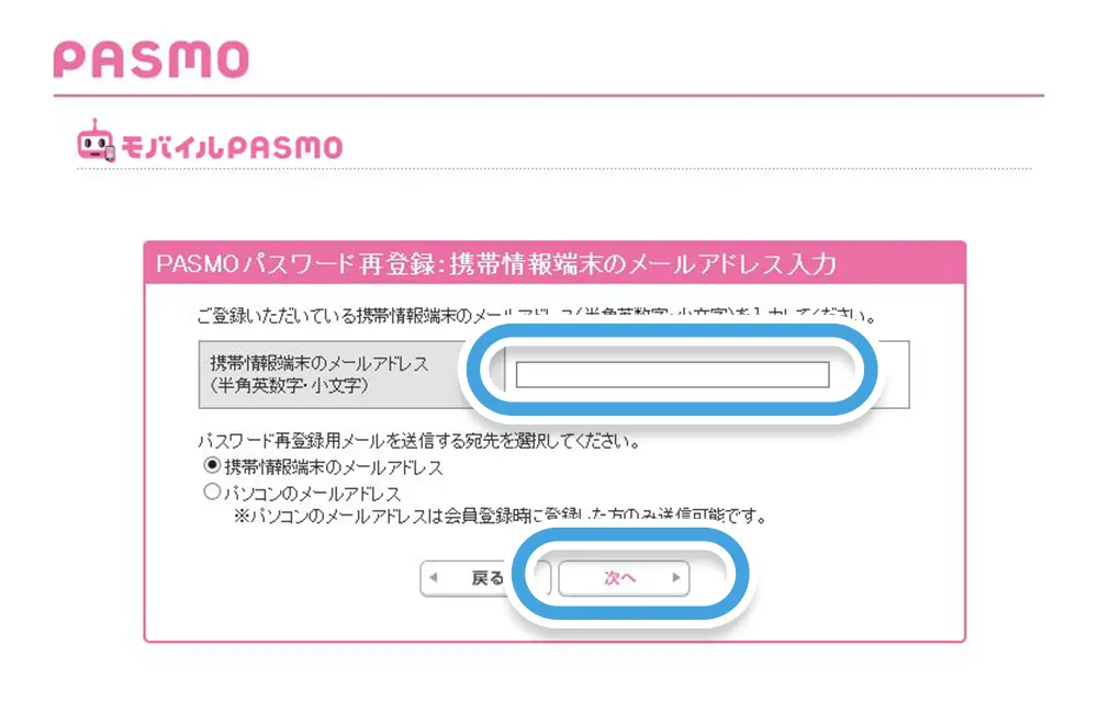 以下の手順に沿って再設定してください。メールとモバイルPASMOアプリでの操作